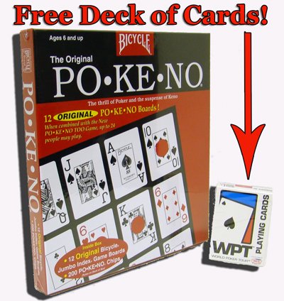 The thrill of Poker and suspense of Keno Includes 12 jumbo index game cards and 200 chips WE are also adding in a deck of WPT Bee playing cards to this deal The WPT Bee is the highest quality plastic coated playing card on the market today and you will receive it absolutely FREE 2-12 Players A Read More..